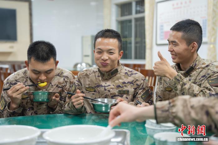 图为武警民卒单干造做汤圆。施朝洲 摄
